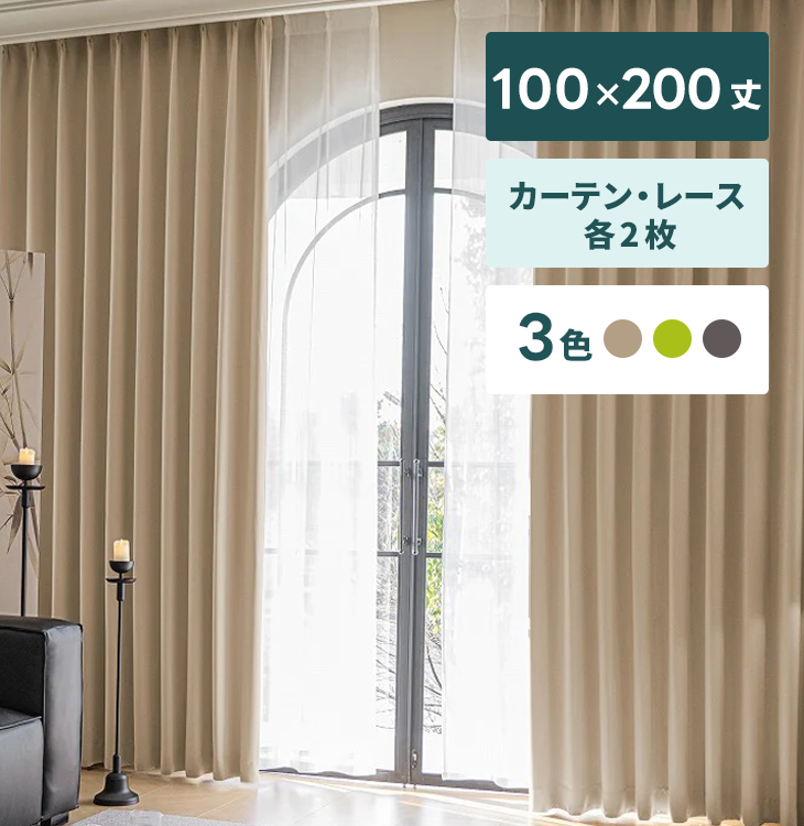 カーテン・レースセット【100×200cm丈・各2枚】